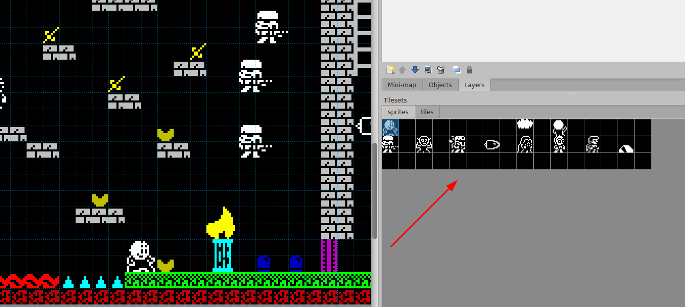 En versiones anteriores en el sprite set desde tiled veías todos los sprites incluyendo por ejemplo lso frames de animación que no debían ser seleccionados. Eliminándolos es más complicado seleccionar uno incorrecto.